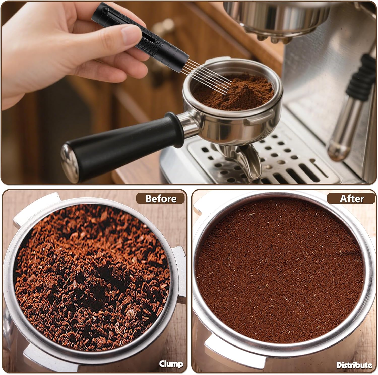 Coffee tamper, espresso WDT tool, magnetic dosing funnel and round silicone pad