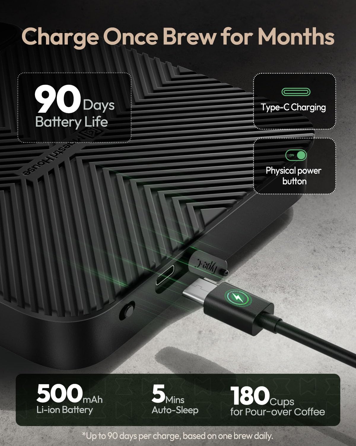 Maestri House S3 coffee scale with timer, 3kg/0.1g rechargeable digital scale, 3 brew modes, adjustable ratios & flow rate display, barista-grade for pour-over, espresso, french press