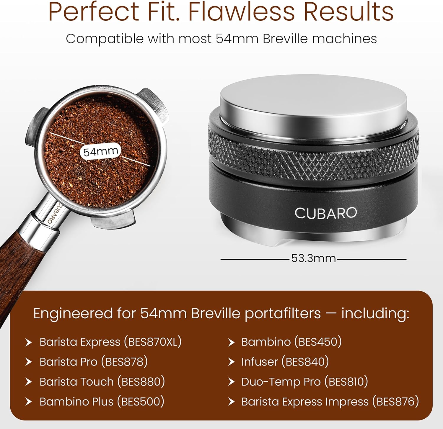 53.3mm Dual head coffee leveler tool for 54mm Breville portafilter - adjustable depth, weighted espresso tamper for smoother, more consistent shots